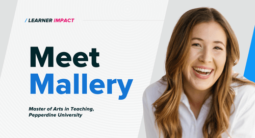 Meet Mallery, an actor who spent years building a career in the performing arts before realizing what she really wanted was to be in a classroom shaping futures. The flexibility of Pepperdine University’s online Master of Arts in Teaching program, powered by 2U, allowed her to make that career pivot. She worked during the day, trained in the classroom, cared for her family, and is on the verge of graduating from a top institution.